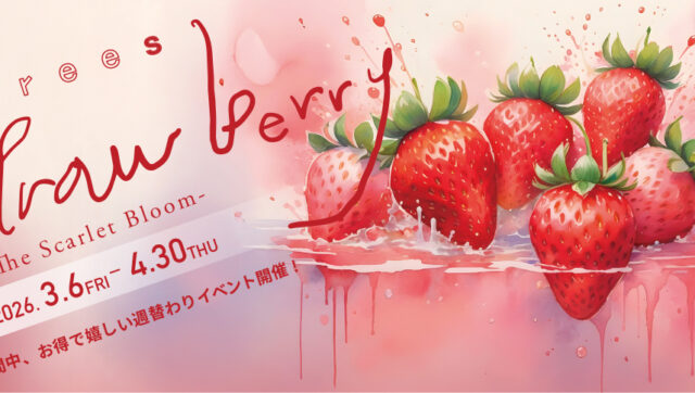 3月7日よりTreesグループフェアがスタート☆ 春の甘酸っぱい苺をたっぷり使った苺スイーツが主役☆ 各店、個性豊かなラインナップとなっていますので、ぜひ食べ比べてみてください! 2週間ごとに期間限定で入れ替わる超お得な[…..]