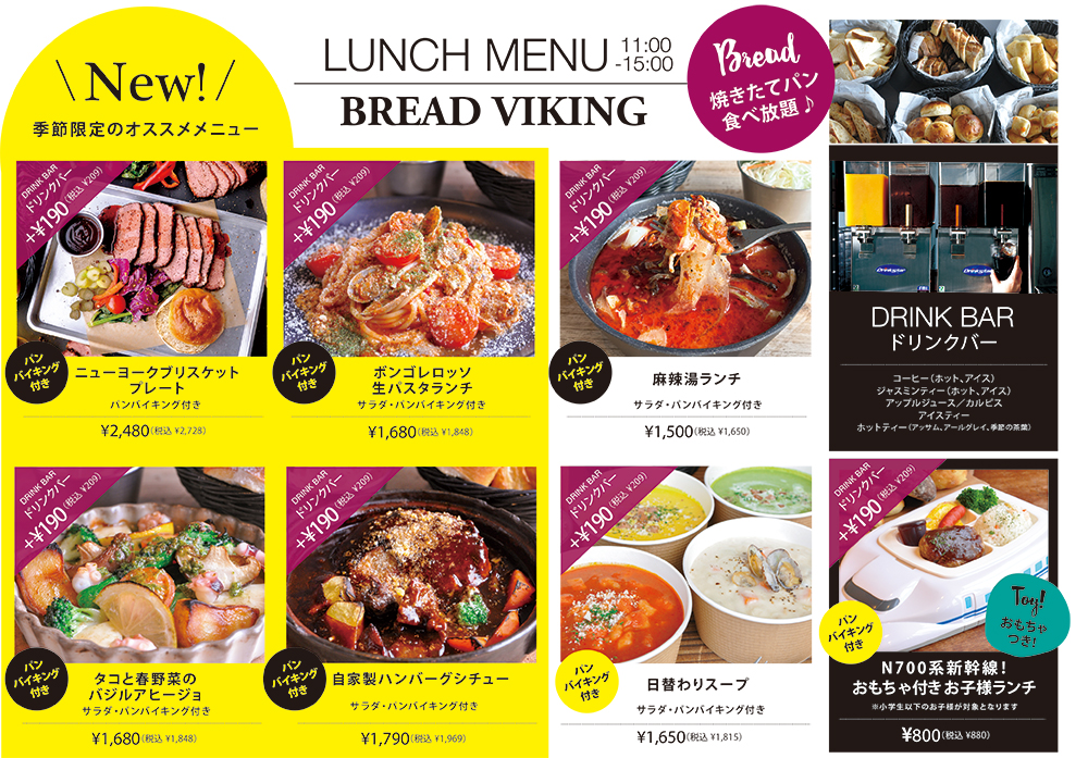 バリエーション豊かなパンバイキングをお楽しみいただける人気のランチです♪